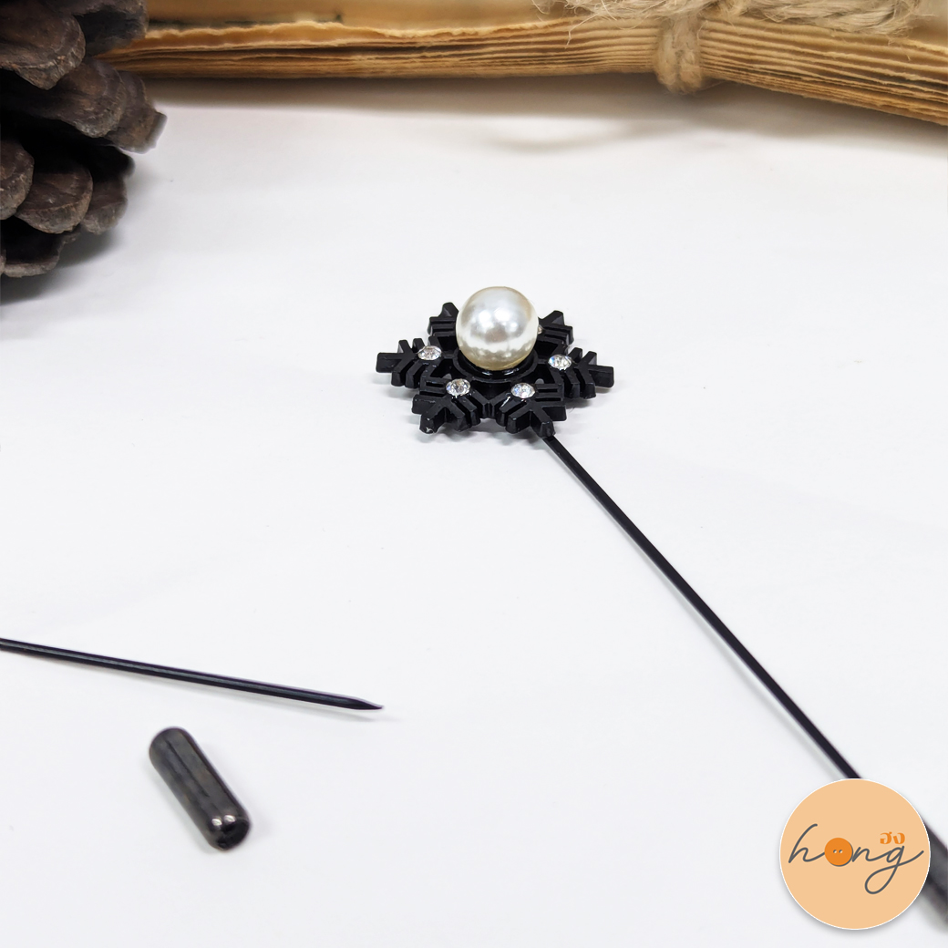 เข็มกลัดติดปกเสื้อ ตัวเข็มกลัดเป็นแบบก้านยาว ปลายแหลม มีตัวล็อค เหมาะสำหรับติดบนปกเสื้อ