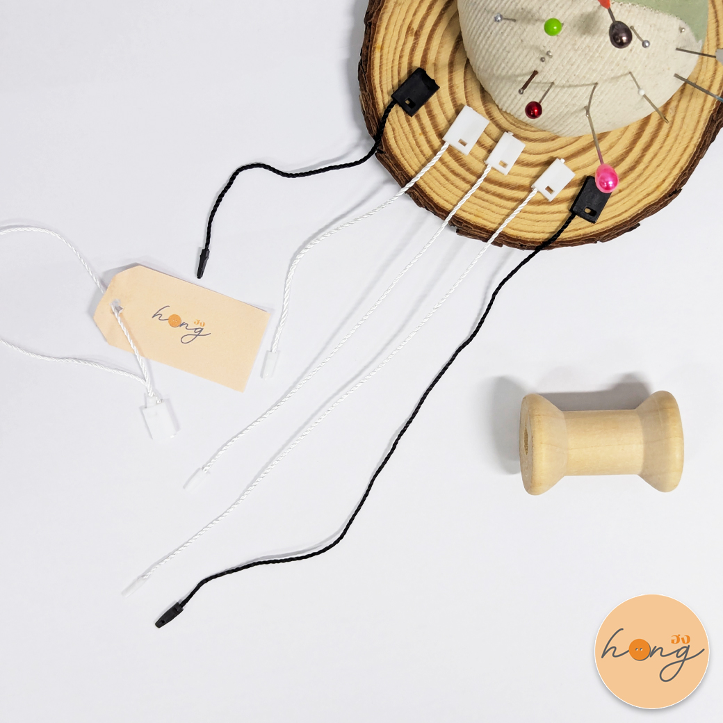 เชือกคล้องป้าย มีลักษณะเป็นห่วงที่มีตัวล็อคในตัว ทำจากเชือกคุณภาพดี ใช้สำหรับติดป้ายราคา ป้ายแท็ก หรือข้อมูลสินค้าให้เข้ากับตัวสินค้า เช่น เสื้อผ้า รองเท้า กระเป๋า เมื่อสอดปลายเข้าไปในส่วนหัวแล้วดึงให้ล็อคแน่น จะไม่สามารถดึงย้อนกลับได้โดยง่าย ทำให้สินค้าติดป้ายได้อย่างปลอดภัย และรวดเร็วโดยไม่ต้องใช้เครื่องมือ